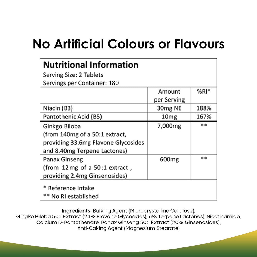 The combination of Ginkgo Biloba and Korean Ginseng, creates a foundation for well-being. The inclusion of Terpene Lactones and Glucosides (active compounds found in Ginkgo extracts), acting as antioxidents compounds recognized for their impact on cognitive health, along with the energizing effects of Vitamins B3 and B5, embodies New Leaf's commitment to blending traditional ingredients with scientific insight for optimal health.