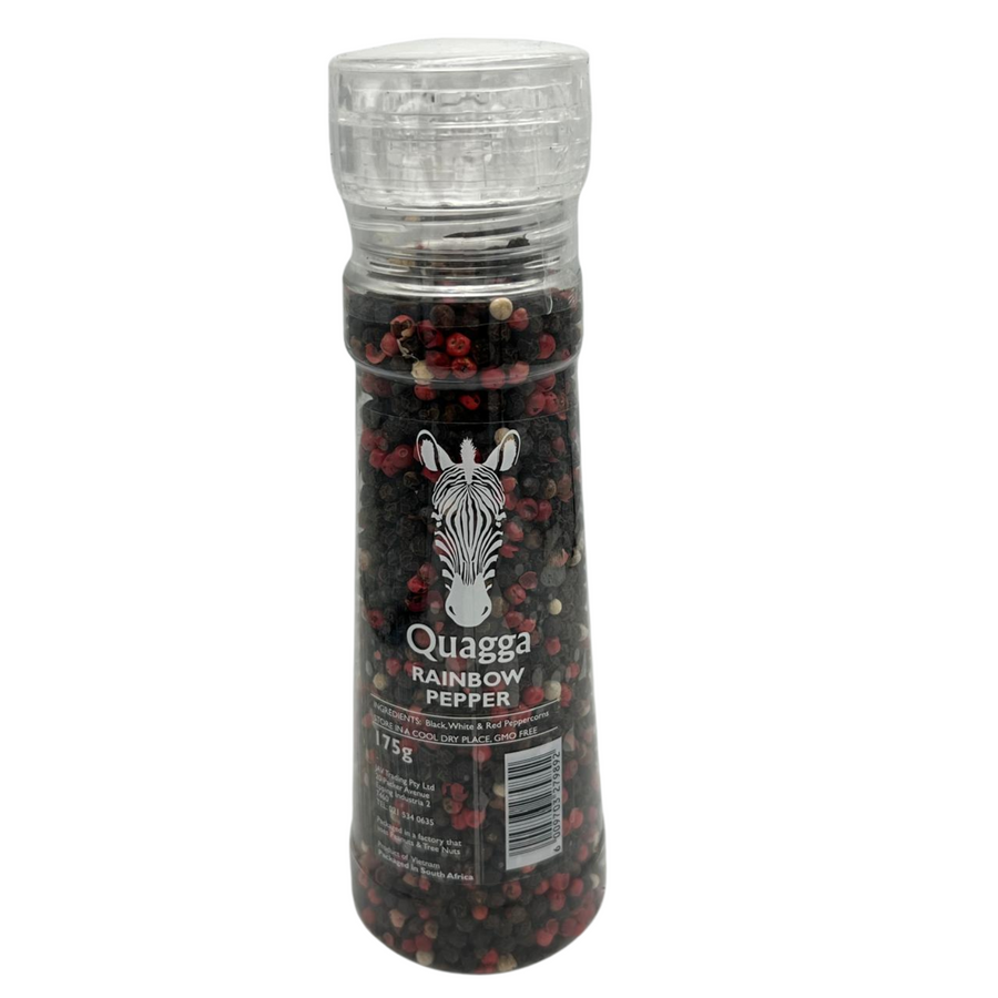 Elevate your dishes with the vibrant and complex flavors of Quagga Rainbow Pepper. This blend of red, green, black, and white peppercorns delivers a colorful burst of taste and aroma, perfect for enhancing a wide range of culinary creations.