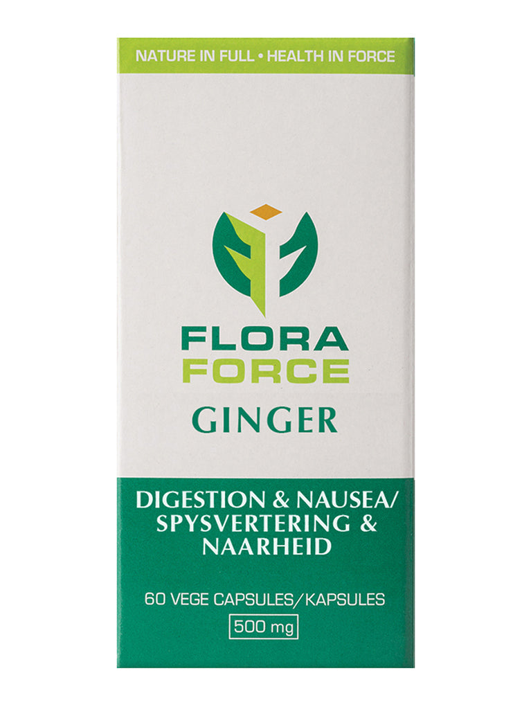 FLORA FORCE® GINGER capsules contain ginger (Zingiber officinale) rhizome powder. Ginger has been traditionally used to help ease symptoms related to digestive disturbances and nausea.