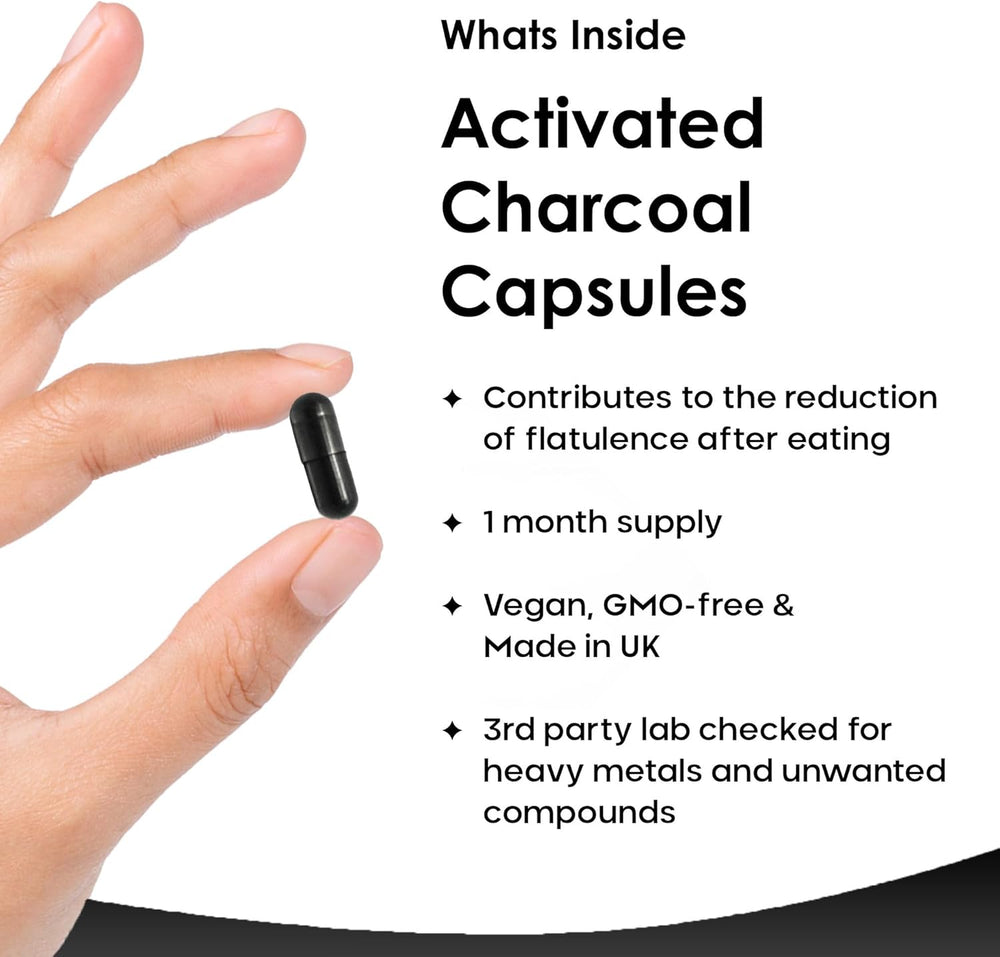 β Supports Digestive Health β Activated charcoal is known for its ability to help reduce excessive intestinal gas when consumed before and after meals.