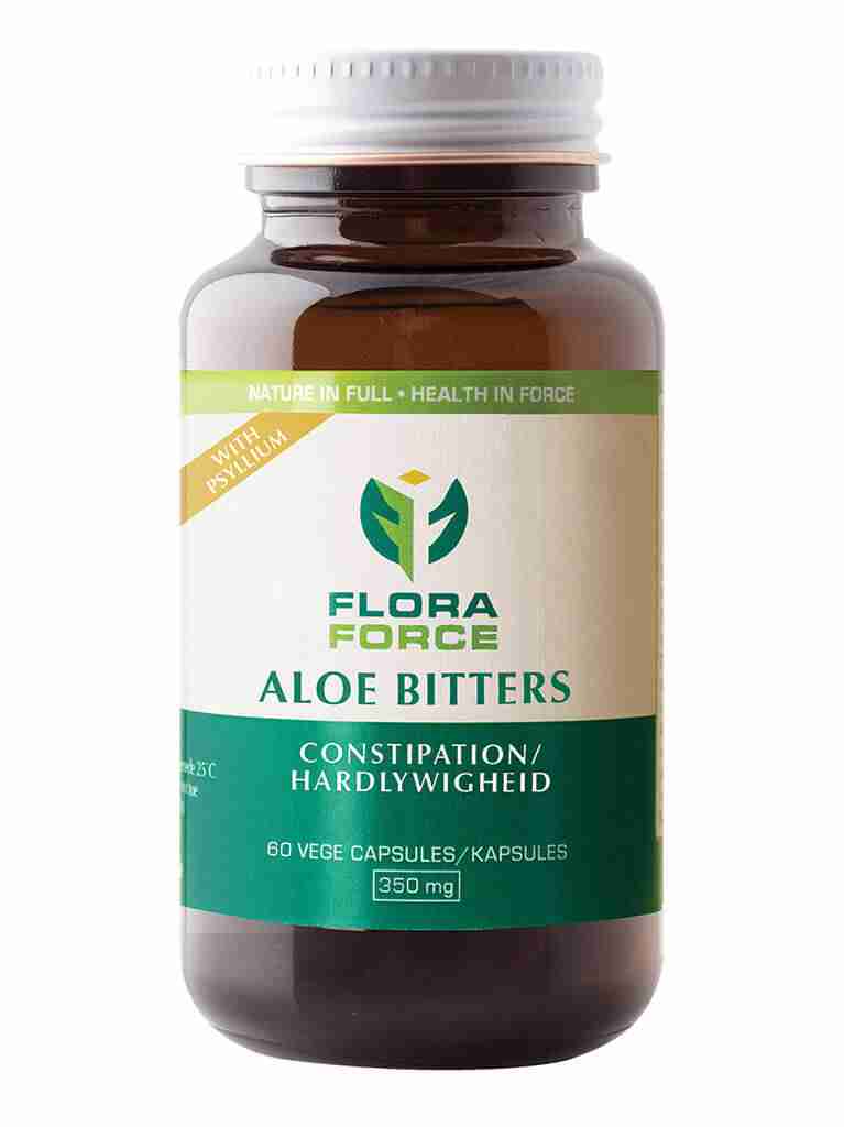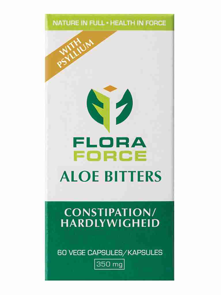 FLORA FORCE® ALOE BITTERS with PSYLLIUM capsules contain Aloe ferox latex powder and Psyllium husks (Plantago psyllium) for a unique, dual action traditional herbal laxative to easily relieve constipation.