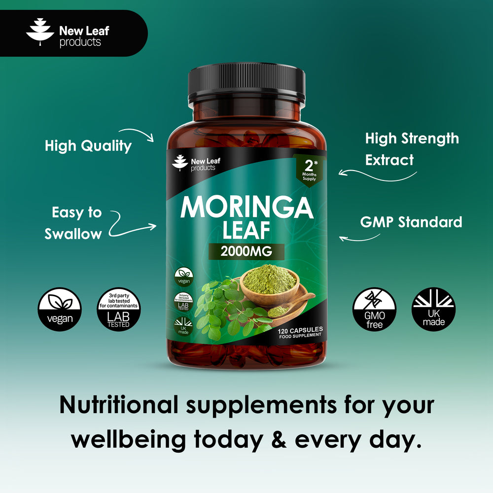 New Leafβs Moringa Leaf Capsules combine Moringa Leaf Extract and Moringa Leaf Powder in a convenient capsule form. Moringa is a nutrient-dense plant widely recognized for its traditional dietary use in various regions, including India, Africa, and Asia.